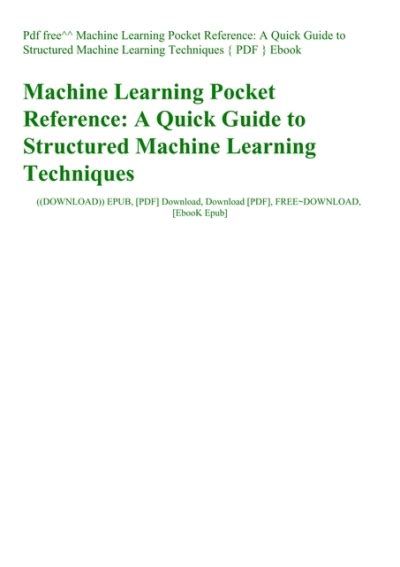 [QZN] ≡ PDF Free Machine Learning Pocket Reference A Quick Guide To Structured Machine Learning Techniques Books